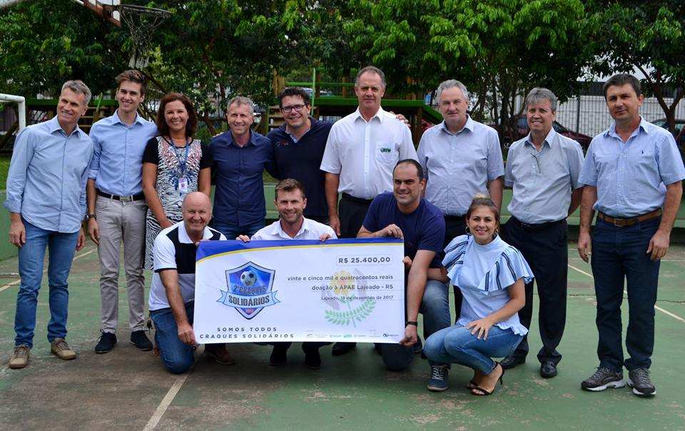 Dia 15 de dezembro de 2017 ocorreu a segunda edição do evento Craques Solidários em prol da Apae de Lajeado – RS. O jogo ocorreu no Estádio Olímpico da Univates, em Lajeado, que faz parte de um moderno complexo esportivo, com capacidade para 2 mil torcedores sentados, com gramado padrão Fifa.